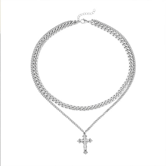 DOUBLE CHAIN CROSS CHAIN NECKLACE