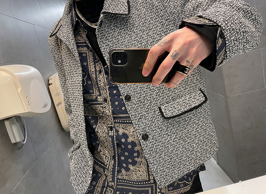 RT No. 3144 KNITTED PLAID COLLARLESS JK