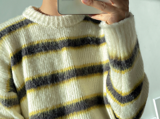 RT No. 3470 KNITTED ROUND NECK STRIPED SWEATER