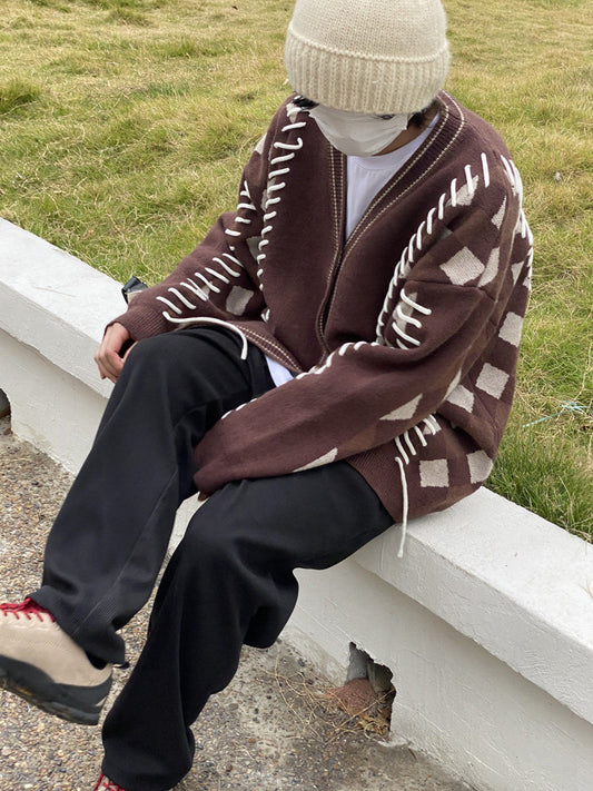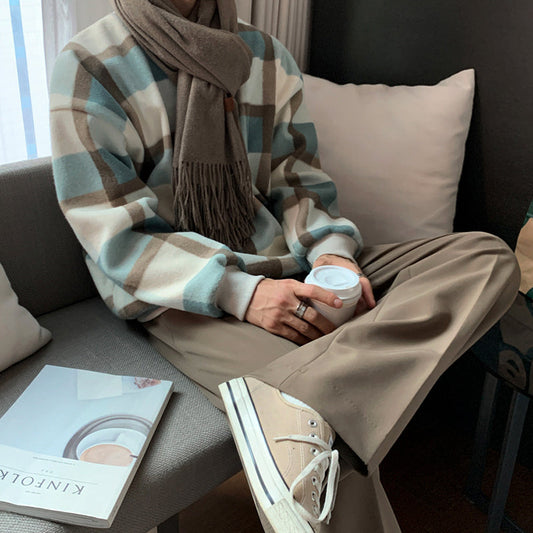 RT No. 3472 WOOLEN KNITTED PLAID SWEATER