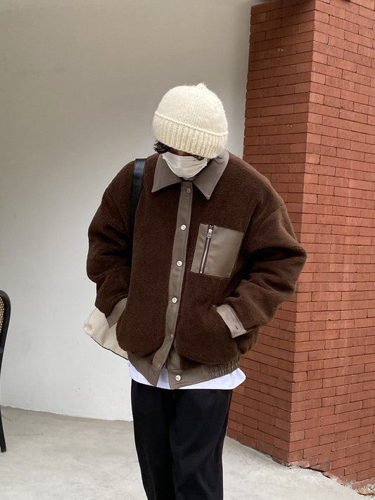 RT No. 3489 BROWN FLEECE EMBROIDERED COLLAR JK