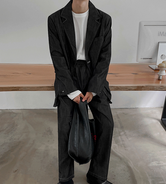 RT No. 4284 BLACK DENIM BLAZER JK & WIDE JEANS