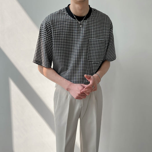 RT No. 4440 ROUND NECK PLAID SHORT SLEEVE SHIRT