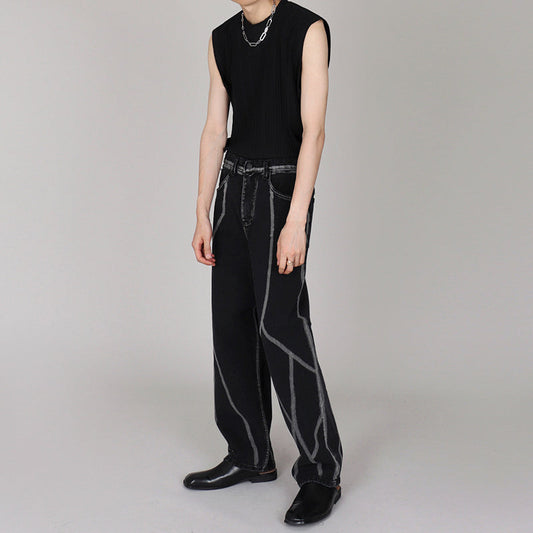 RT No. 4444 PAINTED STRIPE BLACK WIDE STRAIGHT JEANS