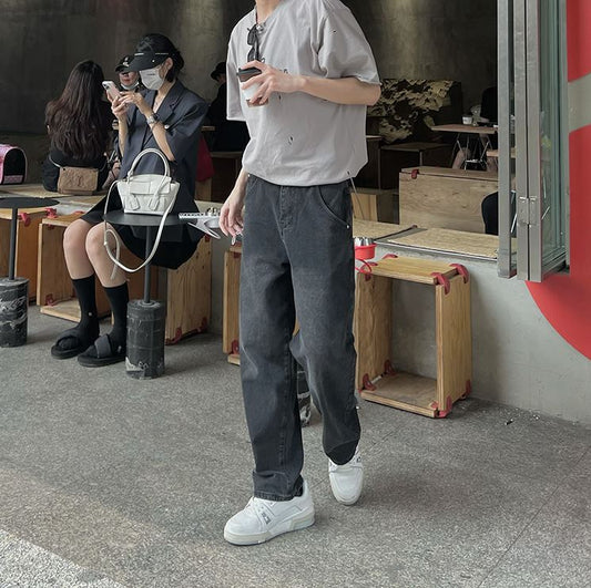 RT No. 5015 DARK WASHED GRAY WIDE JEANS
