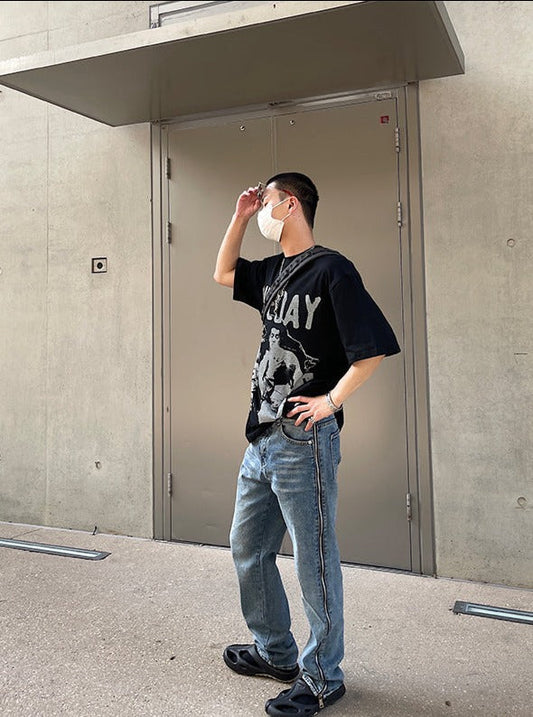 RT No. 4514 WASHED BLUE SIDE ZIPPER JEANS