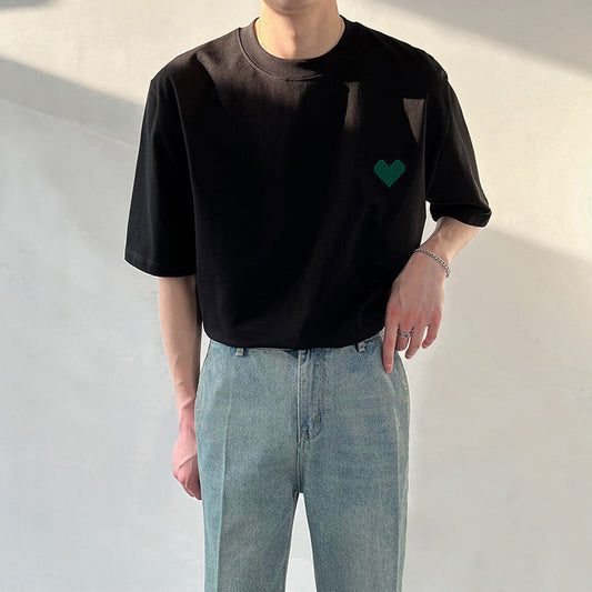 RT No. 5003 COTTON ROUND NECK HALF SLEEVE HEART SHIRT