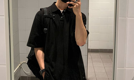 RT No. 5071 BLACK HALF SLEEVE BUTTON-UP COLLAR SHIRT