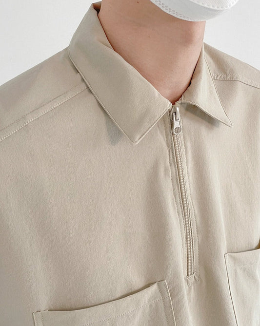 RT No. 5096 HALF ZIP-UP HALF SLEEVE COLLAR SHIRT