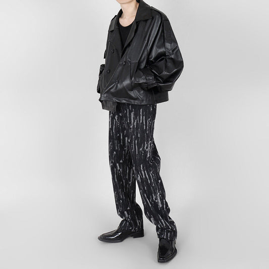 RT No. 5404 PATTERN DYED BLACK STRAIGHT WIDE JEANS