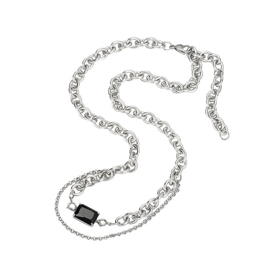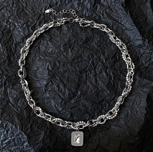 SQUARE GEM PENDANT CHAIN NECKLACE